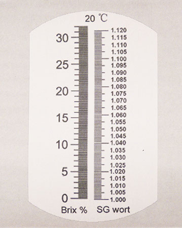 A refractometer is used to measure the density of a solution, to take a Brix reading in wine making or to take a Specific Gravity in Beer Making. Traditionally Refractometers have featured just a Brix scale requiring a calculation to convert to Specific Gravity. Now our new Refractometer features both scales making it ideal for brewers and vintner,,For Wine: Measure the brix level (sugar level) in your grapes with just one drop! The perfect vineyard tool for monitoring ripening grapes. We also use them after the crush to get an exact brix reading. They cannot be used after fermentation, without using our special calculator, because alcohol distorts the reading.,,For Beer Making: A refractometer allows you take instant gravity readings at any point during the boil, or even during the run off of the sparge during an all-grain brew. These 'during the process' readings allow you to add more water or boil longer so you can attain exactly the gravity you desire. Refractometers measure in degrees brix, which are nearly equivalent to balling or plato, which is how many breweries measure wort gravity.,,Our Refractometer: We have been a direct importer of refractometers for ten years. Early on we purchased from several manufacturers before we settled on the current supplier. We are confident in the quality and we back that up with a one year warranty.,,Refractometer Statistics: Our refractometer is hand held with a metal body, flexible eye piece and rubber grip. It features a 0 to 32% Brix scale with .2% resolution and ATC (Automatic Temperature Compensation). Traditional refractometers without ATC are calibrated to work at 68 degrees Fahrenheit. The ATC function allows you to use the refractometer in an ambient temperature range of 50-86 degrees Fahrenheit (10-30 Celsius.) Because your sample is just one drop, and will quickly adjust to the temperature of the refractometer, the temperature of the sample is irrelevant. Our unit also comes with a manual calibration knob that is secured with a lock nut. To calibrate place one drop of water on the testing platform and adjust to zero if necessary.,