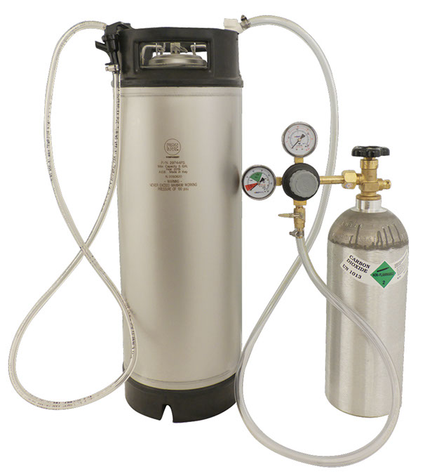 A complete setup for dispensing your homebrew like the pros. There are several advantages to a kegging system. The number one reason is that you no longer have to clean bottles. You will also enjoy drawing your own beer from your own keg. Your friends won't mind either! This system is designed to include absolutely everything you need to dispense your homebrew on draft. Only the best equipment... dual gauge regulator, so you can tell the pressure in the keg, as well as what is left in the tank. Includes an Aluminum CO2 tank that will never rust. 5' of 3/16" ID beer line, so your beer drops to the correct pressure and does not excessively foam in the glass.,,Included In Basic Homebrew Draft System:,,• Brand New Italian made 5 gallon Homebrew Ball Lock Cornelius Keg.,• Beer line assembly with hand held style faucet,• New aluminum 5 lb CO2 tank,• Gas line assembly,• Dual gauge regulator with check valve. Please Note: Brand of regulator may vary.,The CO2 tanks are shipped empty. You can have them filled at a welding supply shop or see your Yellow Pages under Gas- Industrial, Medical.,,Download the KEG400 instructions here.