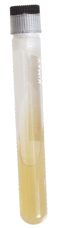 Slant tube filled half way and "on slant" with malt agar. For long term storage of yeast.