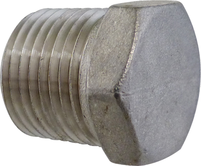 Stainless 1/2 in MPT Plug. Hollow behind threads