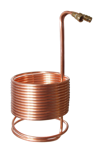 If you frequently brew large beer batches and want to speed up your chilling process, there’s no better immersion chiller than the SuperChiller from MoreBeer! This incredibly efficient chiller is designed to use with any of our 15 and 26 gallon kettles, but it can really be used with any kettle large enough to accommodate a chiller of this size.,This SuperChiller measures 50-feet long and is made up of ½ inch copper tubing, which is some of the highest quality tubing and cools much faster than other materials. It features connection fittings for standard garden hoses on either end, so you can hook it up to a water supply just about anywhere in or outside of your home. Tightly wound coils stack 12 inches in diameter, and there is even a 23 ½-inch bend at the top to go over the lip of your brew kettle. ,,The measurements are: Approx. 12" diameter, 11 1/2" to the top coil, 23 1/2" to the bend to go over the lip of the kettle.