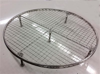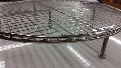 • Our units start with 1.25mm 304SS welded wire mesh on 1/2" centers. The mesh is supported by a double outer ring, both on top and bottom of the mesh and a pair of cross braces across the middle. This support material is nearly 1/4" in diameter an very sturdy. The legs are made of M8 metric bolts and are threaded into five nuts that are welded to the mesh. This modular leg style allows for just about any height you need just by changing out the length of the bolts.