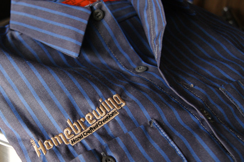 The official homebrew workshirt has arrived to shield your body from bubbling wort and flying hop debris. This durable workshirt will last a long time and features soil release fabrics.